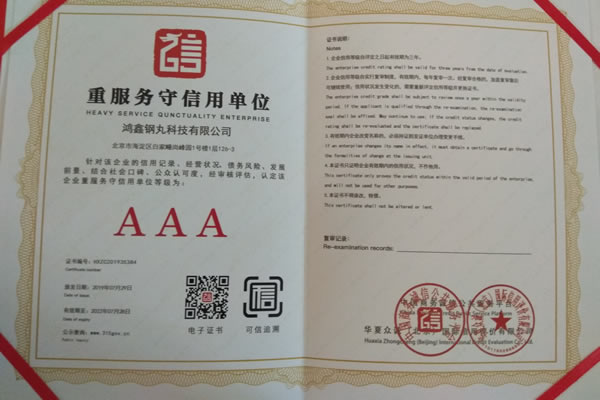 公司所有產品均通過ISO9001 **質量認證,2014年更獲得了第三屆國內金屬磨料行業具有影響力品牌-華尊獎